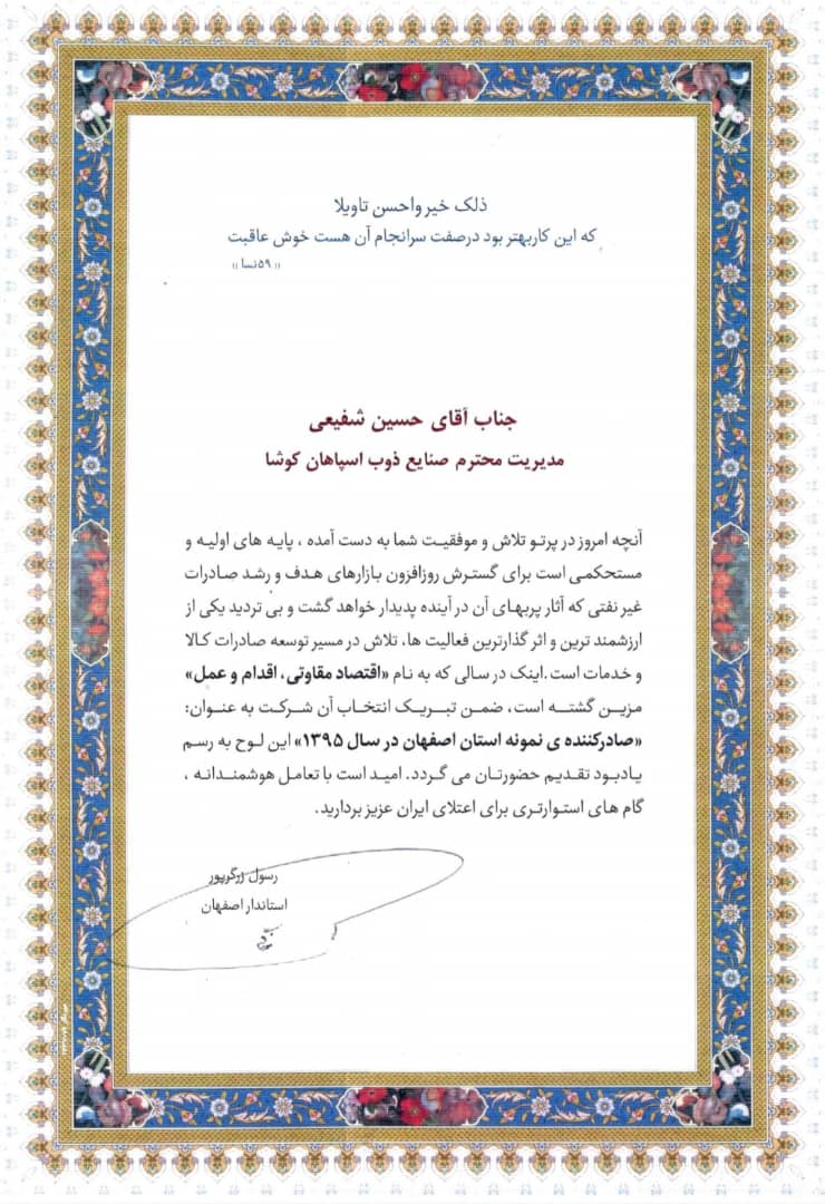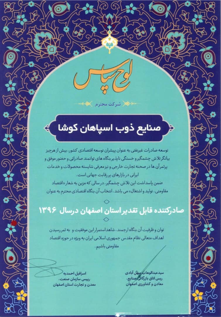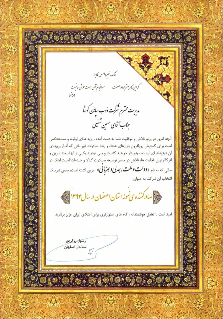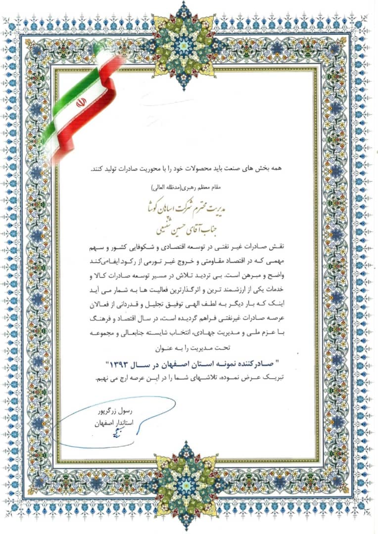 چندین عنوان صادرکننده برتر استانی در سالهای اخیر گردیده است.
