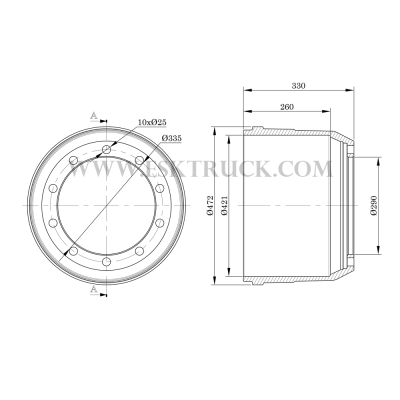 Rear Brake Drum BPW Iraqi 33Cm